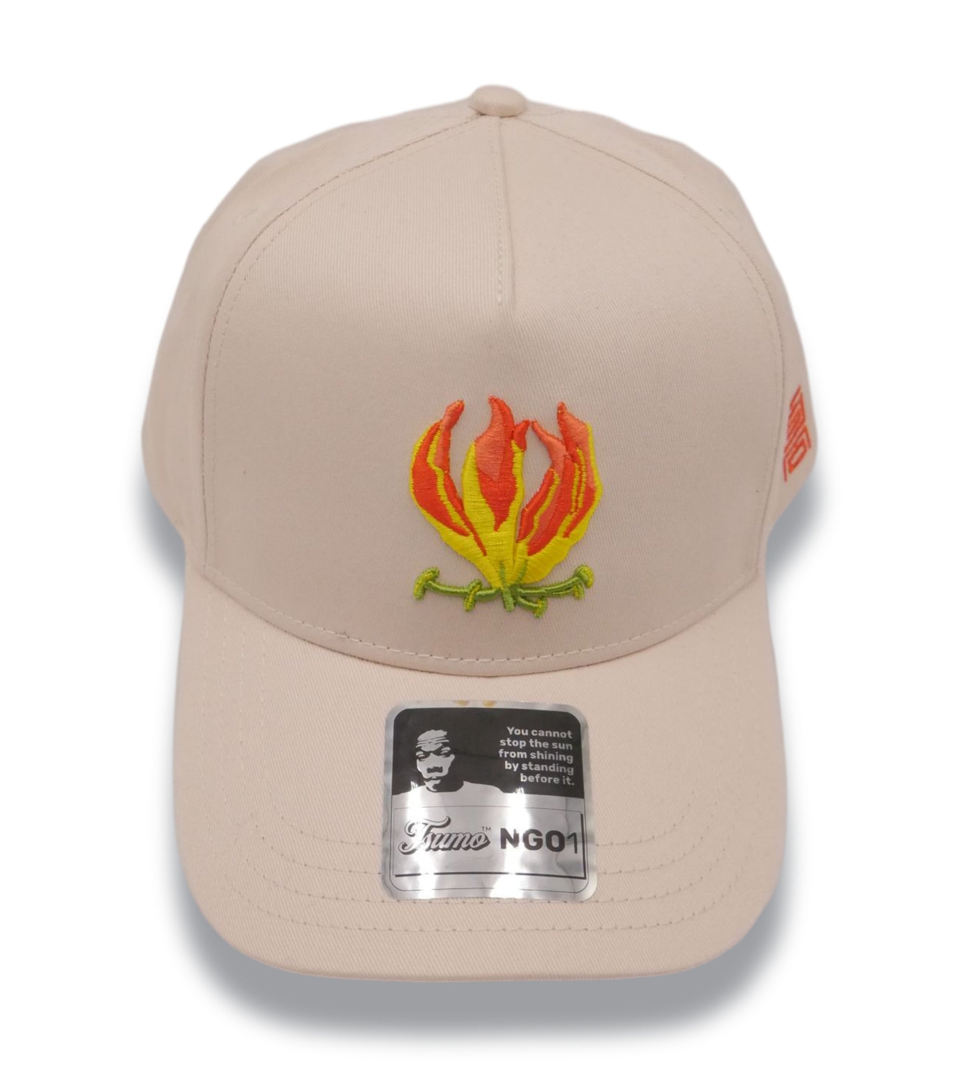 Symbolising resilience and rebirth, the flame lily blooms during Zimbabwe's rainy season and inspires this thoughtfully designed 5 panel cap. Its minimalist aesthetic makes it a versatile layering piece; equally striking as a statement accent or understated complement to your everyday look.